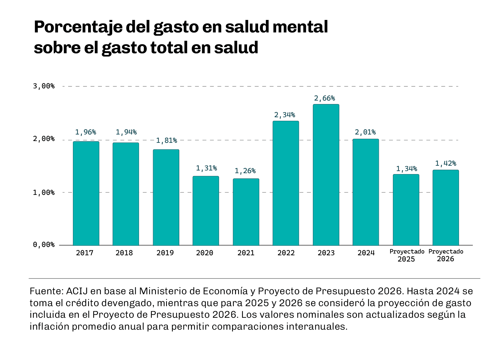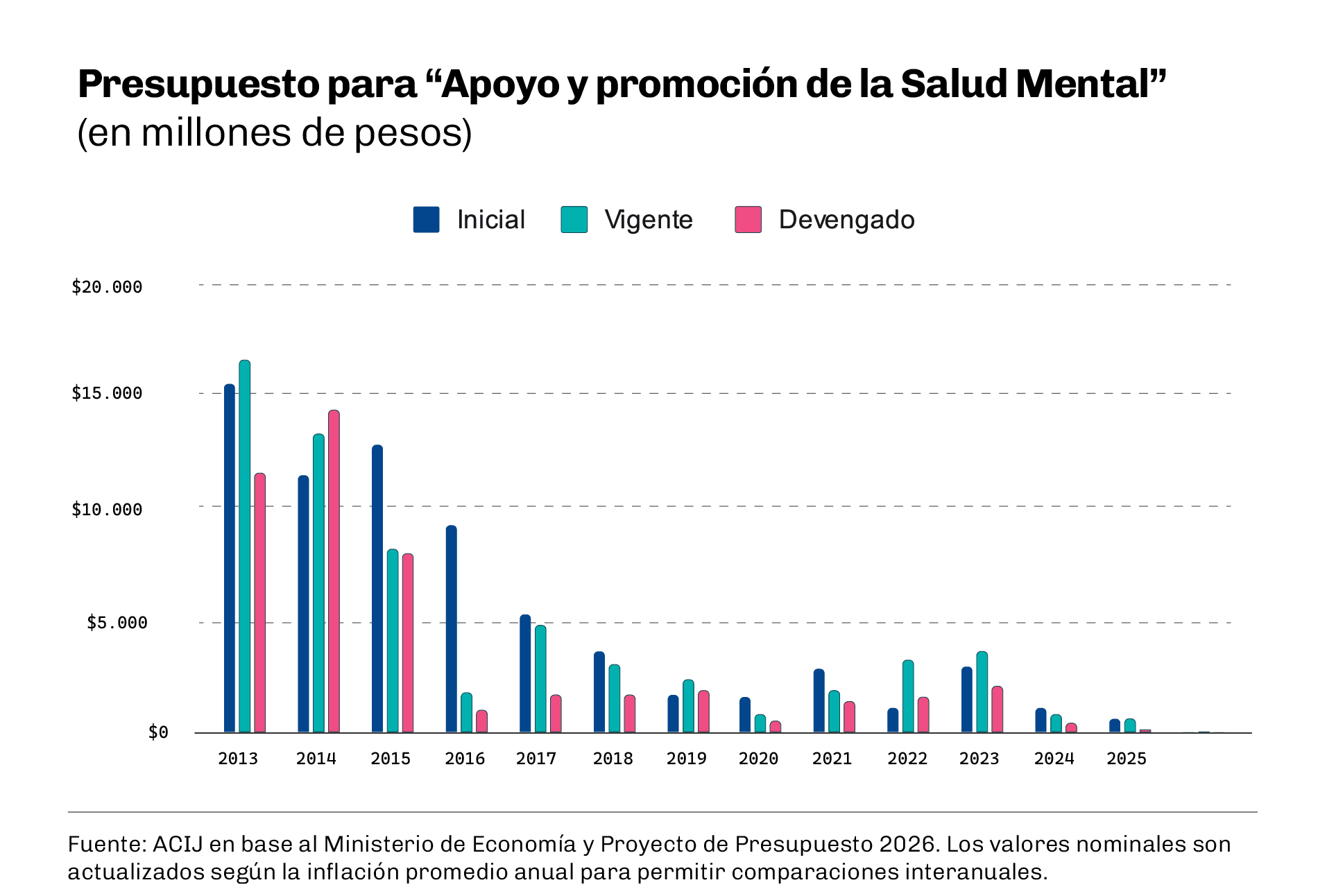 Un informe elaborado por la Asociación Civil por la Igualdad y la Justicia (ACIJ) evaluó el proyecto de presupuesto 2026, presentado por el Poder Ejecutivo a mediados de septiembre, advirtiendo que desfinancia la Actividad de “Apoyo y Promoción de la Salud Mental” del Programa 42 de Prevención y Tratamiento de Patologías Específicas. Se trata de la única línea del Ministerio de Salud de la Nación destinada a implementar la Ley de Salud Mental y a fortalecer los abordajes comunitarios.