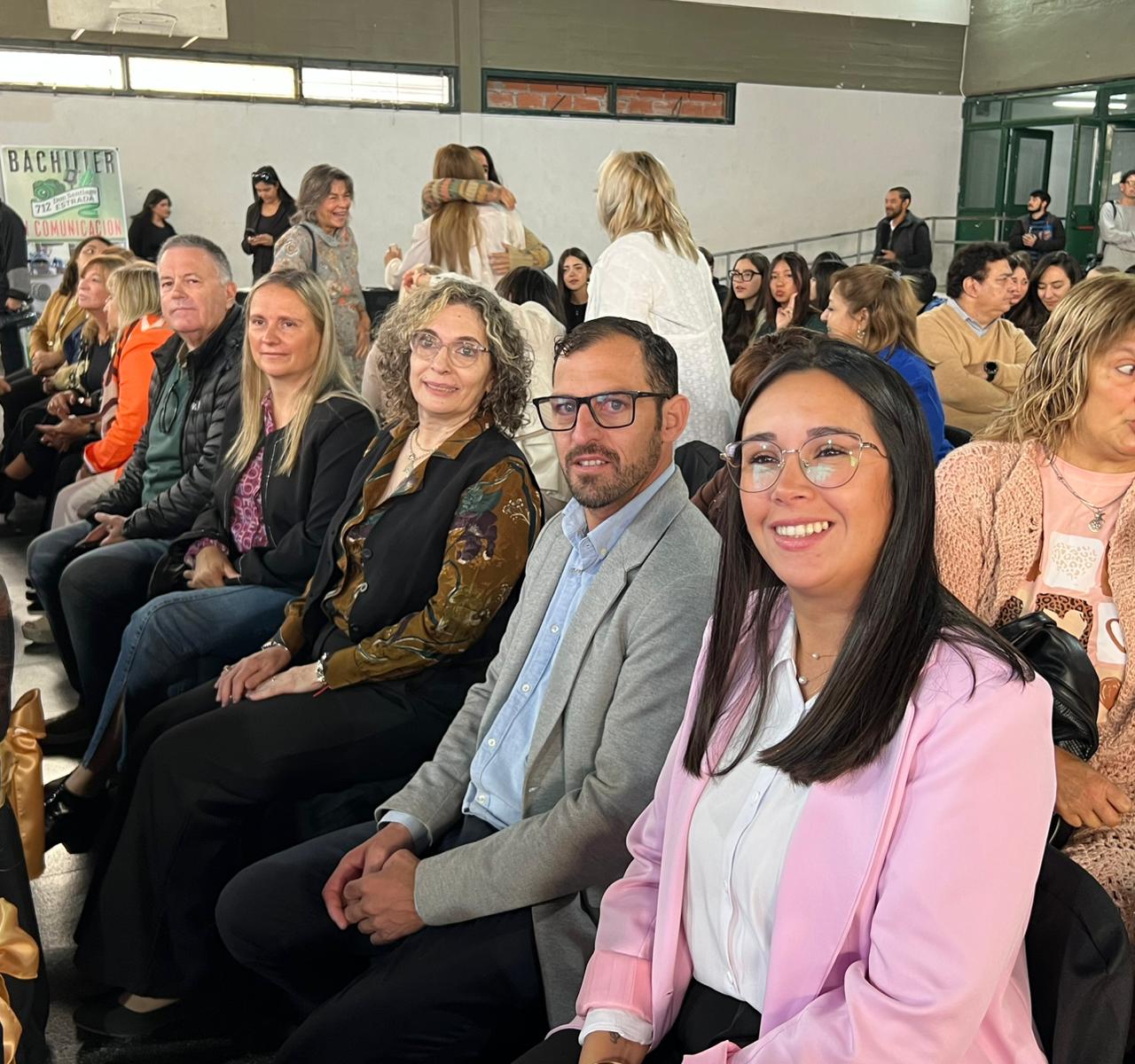 “Estamos atravesando tiempos complejos, que muchas veces nos desafían, que nos interpelan y que nos generan incertidumbre y angustia. Pero también esos tiempos nos necesitan fuertes, unidos y comprometidos”, expresó la directora de la Escuela 712 previo a las palabras del alumno del último año, Benjamín Urrutia.