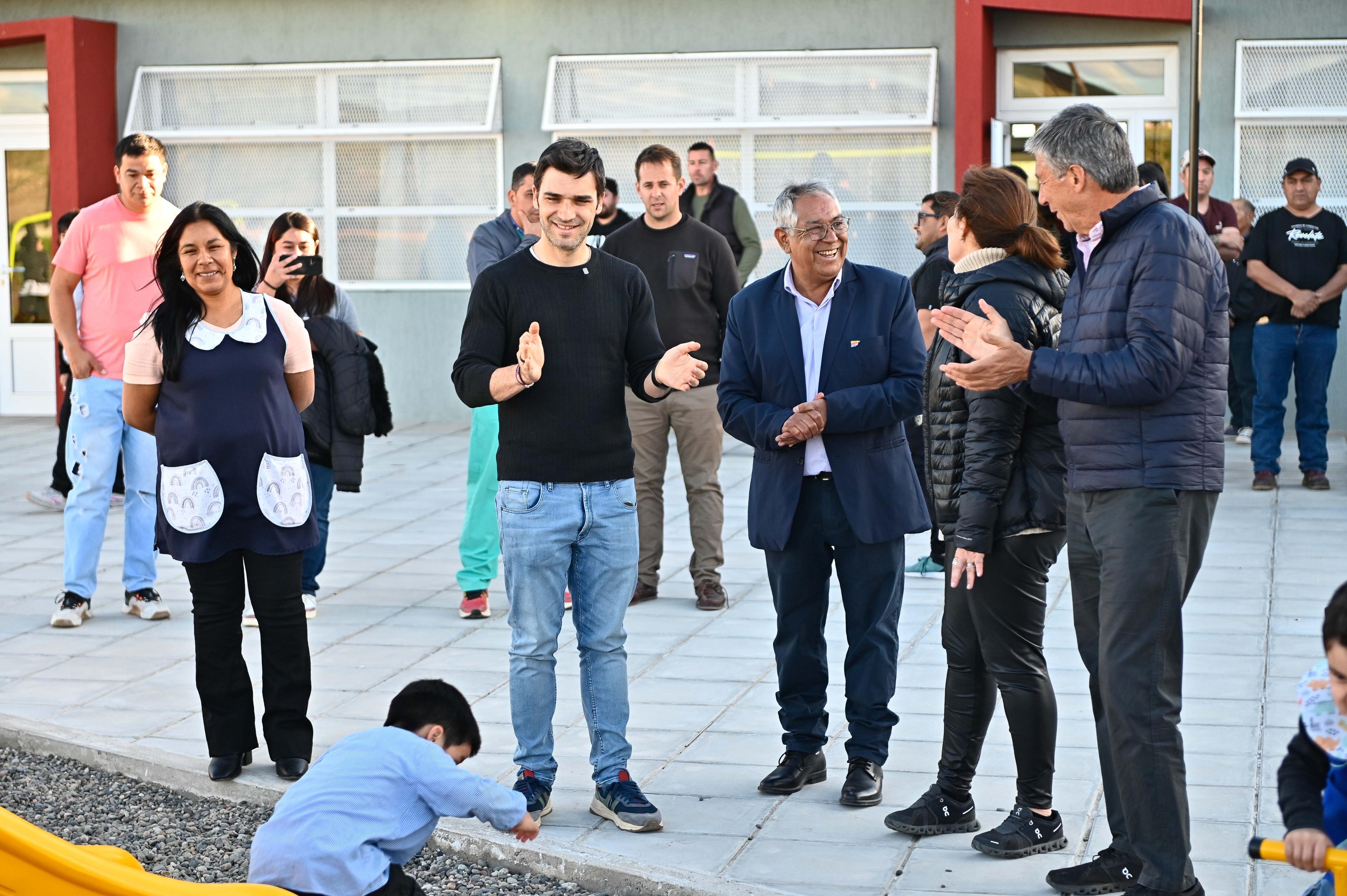 La localidad de Paso de Indios festejó este martes, luego de que el gobernador Ignacio "Nacho" Torres inaugurara el moderno edificio de la Escuela N° 477 de Nivel Inicial, un establecimiento educativo de casi 950 metros cuadrados que es vital no sólo para esa localidad, sino para toda la Meseta provincial.