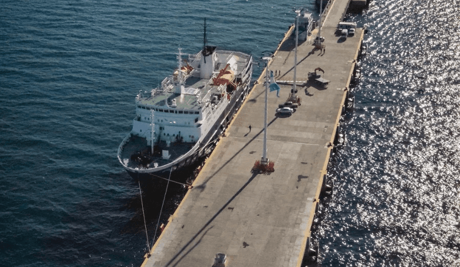 La embarcación, que anticipó su arribo, amarró en la tarde de este martes sobre el lado sur del Muelle Comandante Luis Piedra Buena, procedente de Montevideo (Uruguay), con 44 tripulantes a bordo.