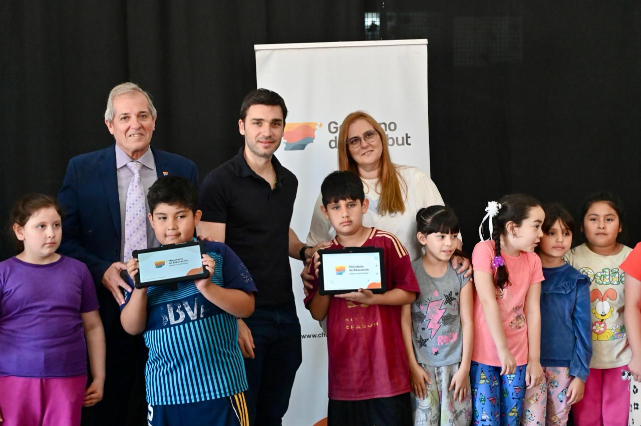 El gobernador Ignacio "Nacho" Torres, encabezó una nueva entrega de insumos tecnológicos a escuelas de la provincia, en el marco de las políticas educativas que la gestión lleva adelante para el fortalecimiento de las distintas instancias académicas y de formación de los estudiantes.
