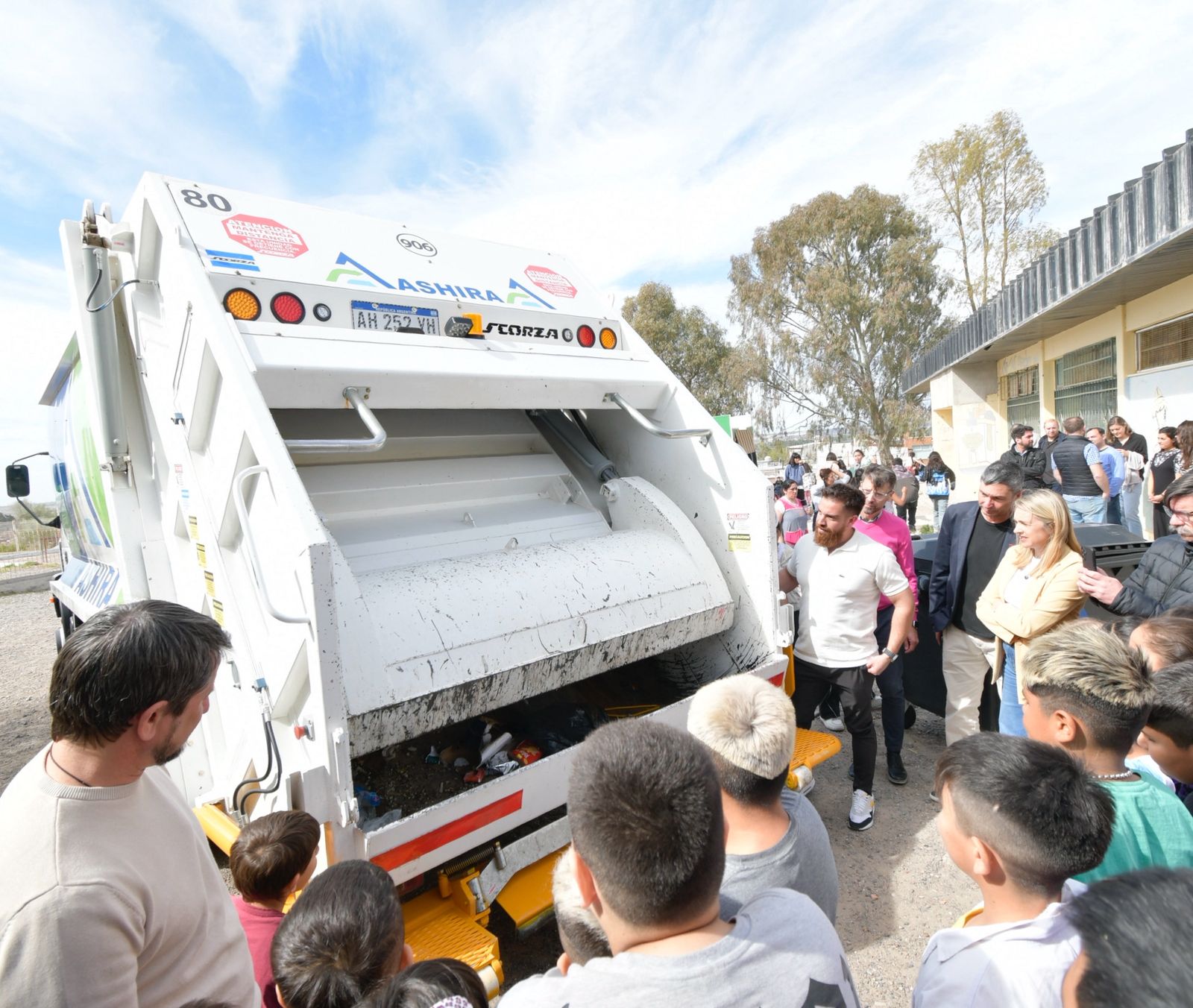 Al finalizar, el intendente recorrió juntos con los estudiantes y docentes el camión de Ashira, que hará el servicio de recolección de residuos secos y el camión Punto Limpio Móvil del consorcio GIRSU.