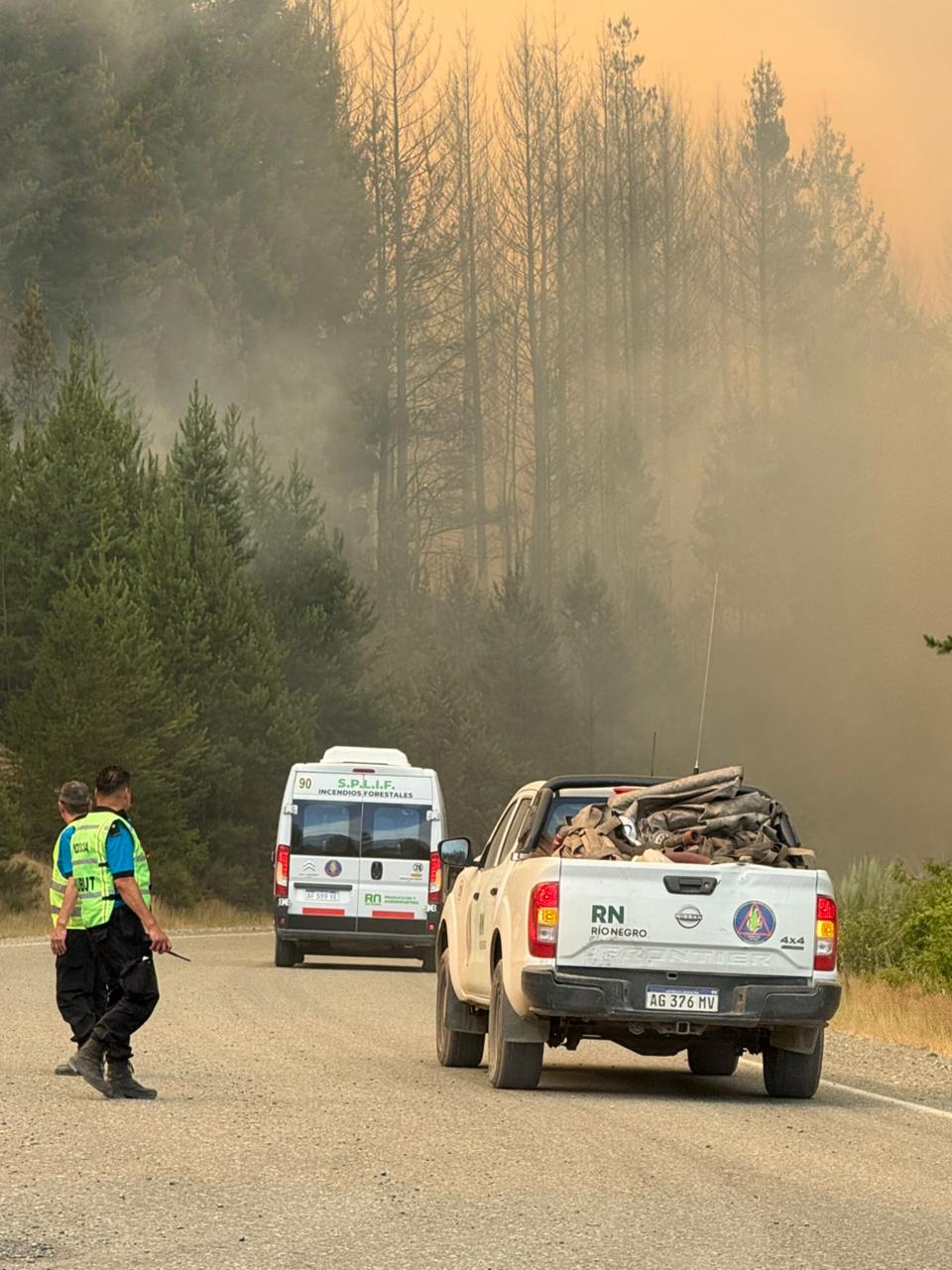 Asimismo, se resolvió el corte total de la Ruta Nacional N° 40, en el tramo comprendido entre Epuyén y El Hoyo, debido a la cercanía del incendio y la presencia de humo en la zona, lo que representa un riesgo para la circulación vehicular.