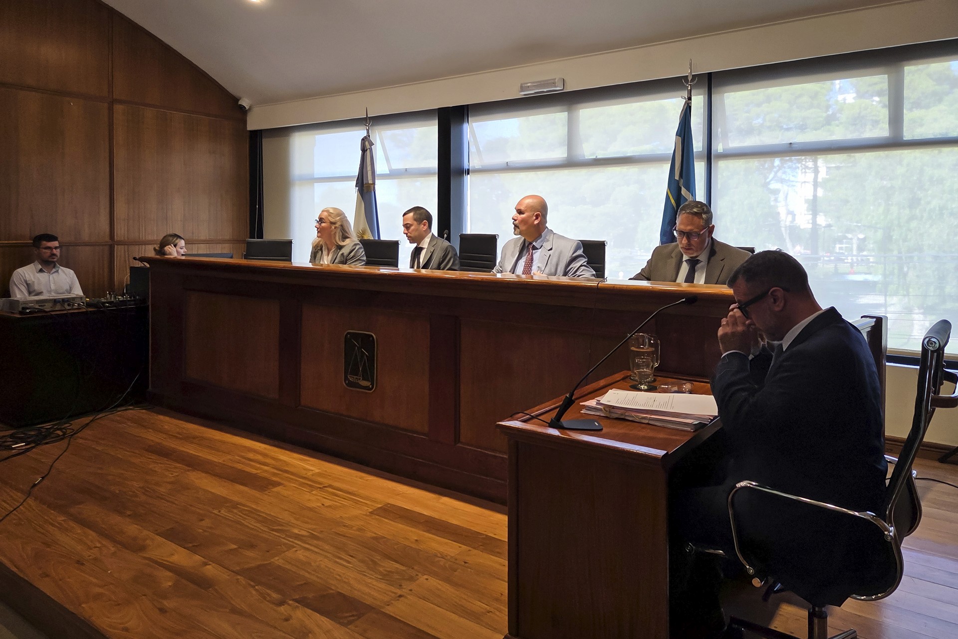 En la audiencia realizada este martes en la Sala de Audiencias del STJ, el tribunal fue presidido por el Dr. Javier Gastón Raidan, Presidente del STJ e integrado por el Ministro Dr. Andrés Giacomone, y tres jueces de cámara que actuaron como subrogantes: la Dra. Carina Estefanía, el Dr. Adrián Barrios y el Dr. Diego Trad.