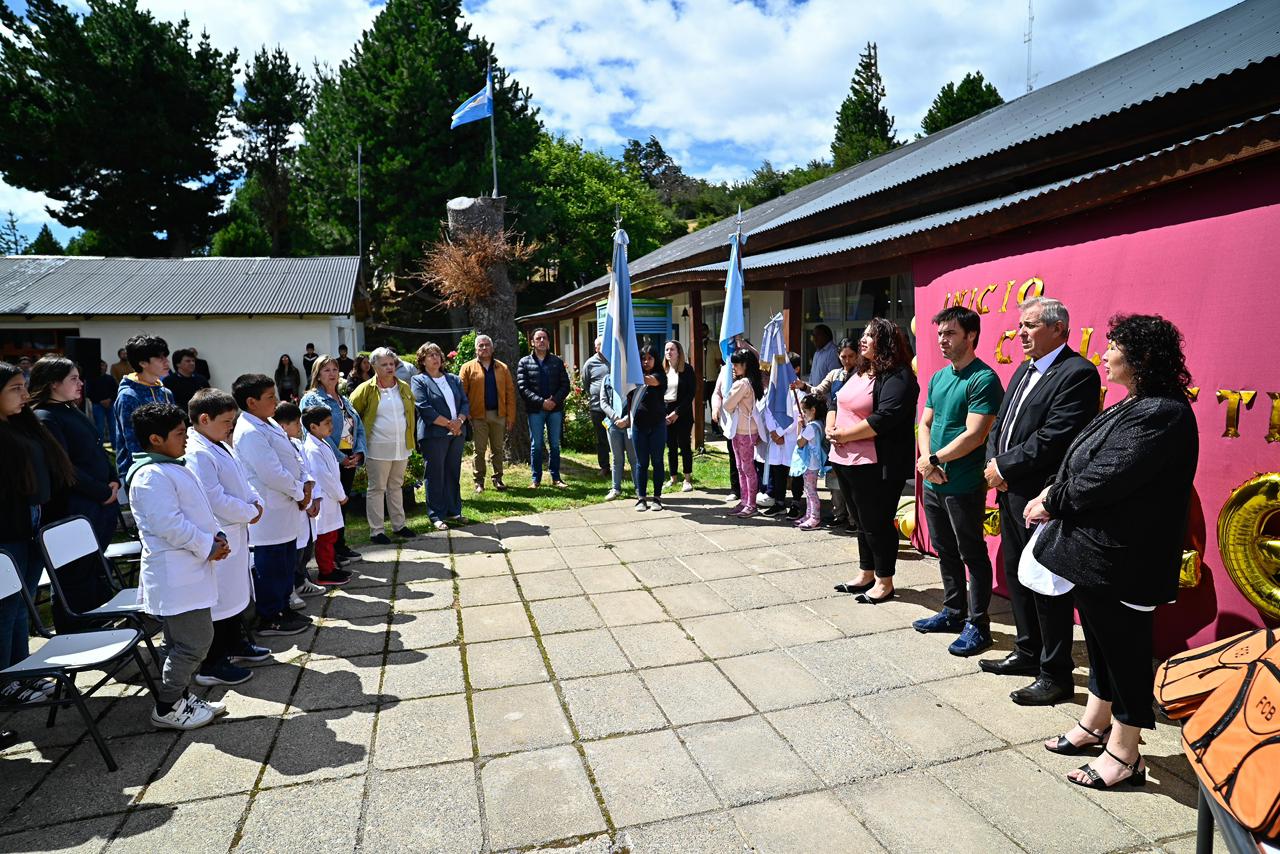 Durante el acto, el gobernador estuvo acompañado por el ministro de Educación, José Luis Punta; la diputada provincial, Sonia Cavagnini; la jefa comunal de Atilio Viglione, Fátima Avilés; y los intendentes de Río Pico, Diego Pérez y de Gobernador Costa, Miguel Gómez. También estuvieron presentes la subsecretaria de Instituciones Educativas del Chubut, Adriana Di Sarli; la directora general de Educación Primaria, María José Uzcudún y la directora del establecimiento anfitrión, Marisa Castro.