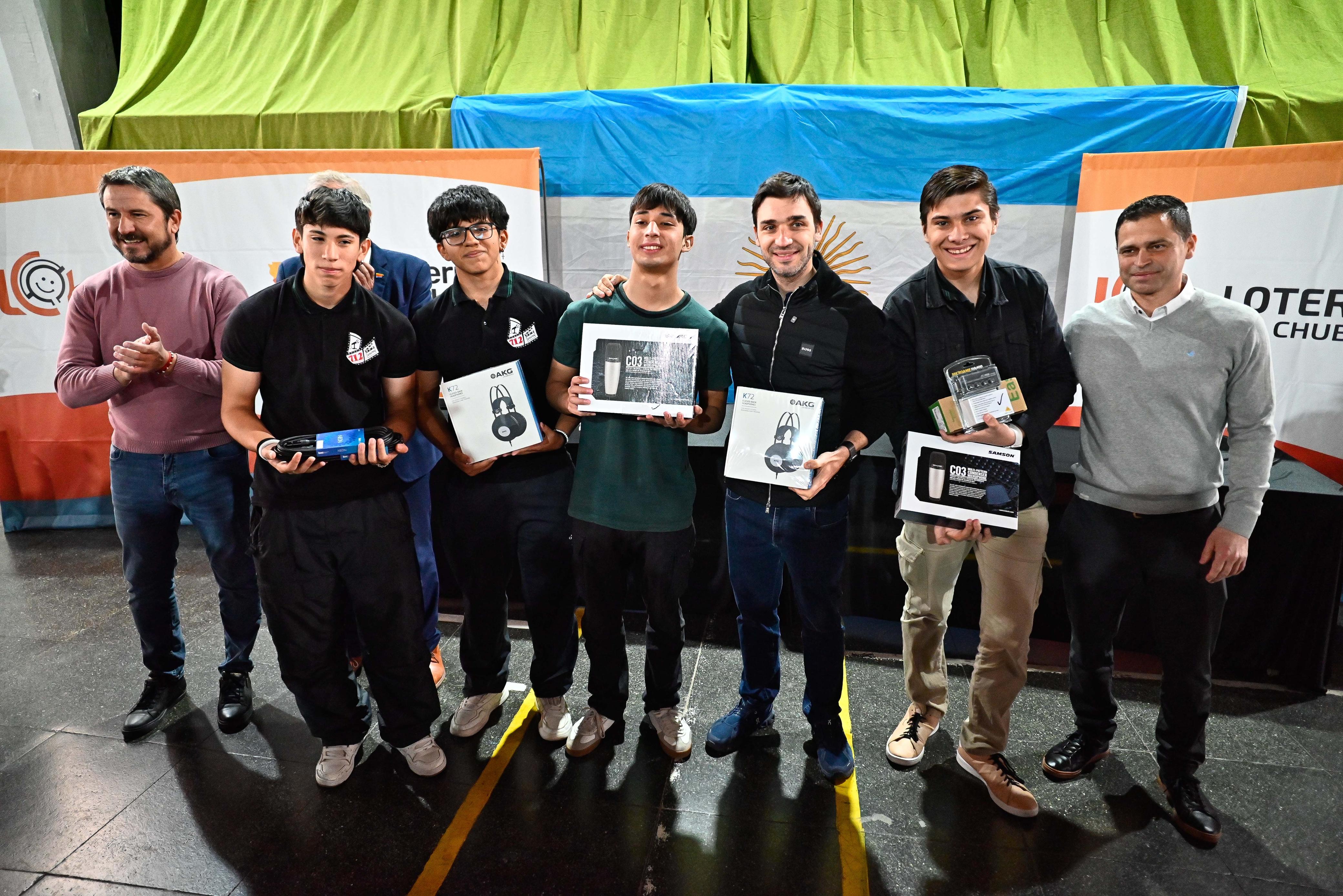 El gobernador del Chubut, Ignacio "Nacho" Torres entregó este jueves a los alumnos del 6° Año 1° División de la Escuela N° 712 de Trelew el primer premio del concurso "Experiencia Telebingo", una iniciativa que el Gobierno de la Provincia puso en marcha a través del Instituto de Asistencia Social para prevenir sobre el juego y las apuestas en línea con mensajes destinados a menores de 18 años.