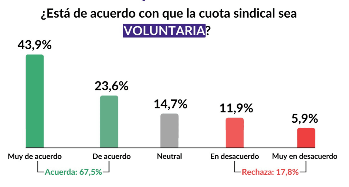 El Monitor de Opinión Pública (MOP) elaborado por Zentrix Consultora durante el mes de noviembre muestra que el 67,5% respalda convertir la cuota sindical en voluntaria, consolidando una mayoría social que rechaza la obligatoriedad vigente y expresa desconfianza hacia el modelo gremial actual. El relevamiento también registra un apoyo extendido a modificar la normativa laboral, con una opinión pública que se inclina por cambios estructurales en línea con las iniciativas impulsadas por el Poder Ejecutivo Nacional.
