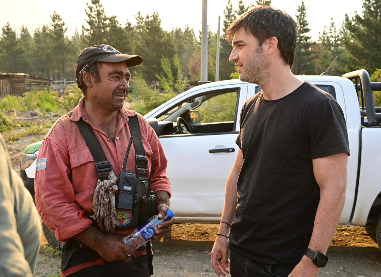 El gobernador Ignacio “Nacho” Torres, junto a funcionarios del Gabinete provincial y los intendentes de Epuyén y El Hoyo, José Contreras y César Salamín, encabezó una recorrida por los distintos sectores de la cordillera afectados por los incendios, donde dialogó con vecinos y relevó las necesidades de los damnificados.