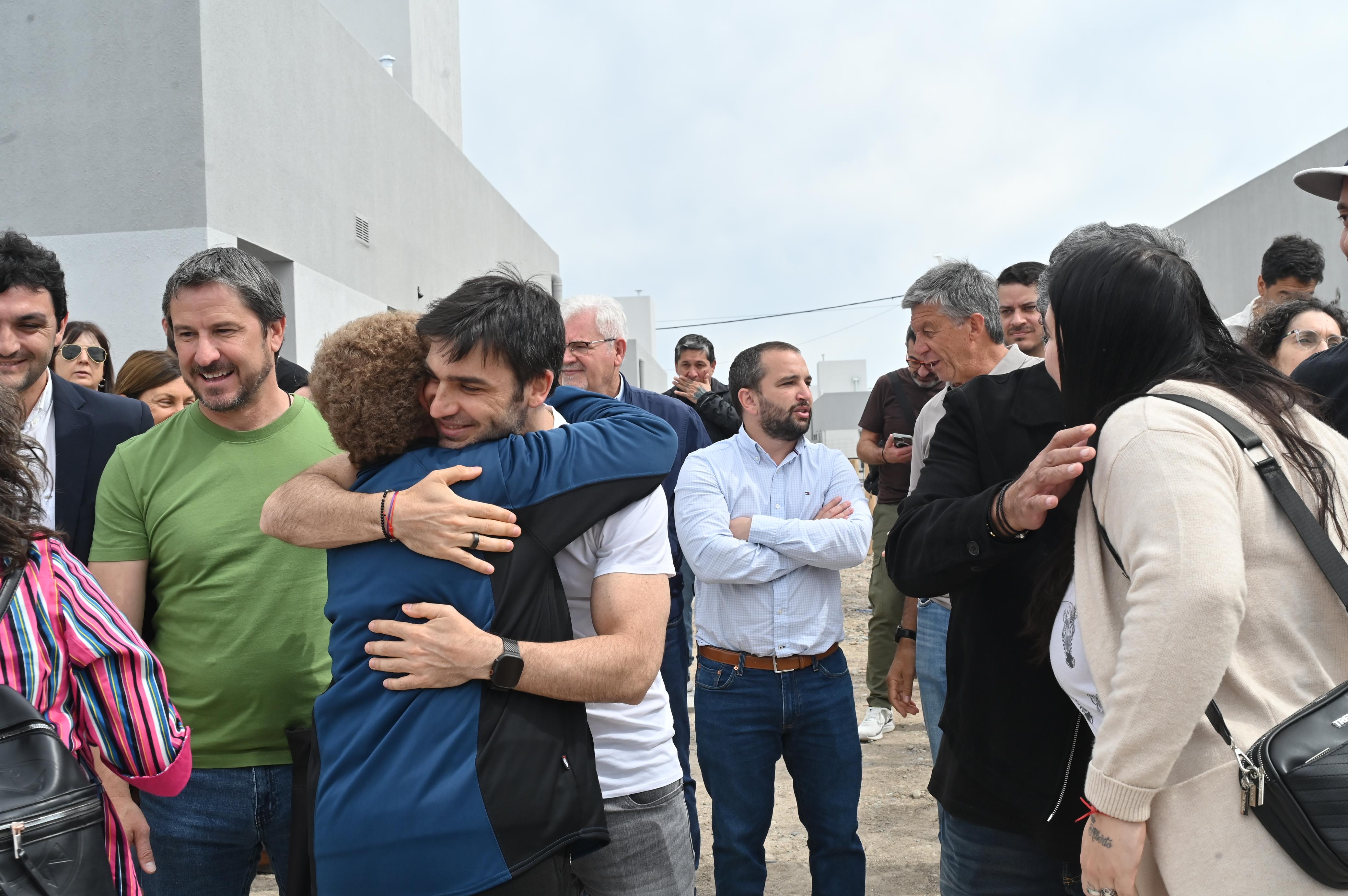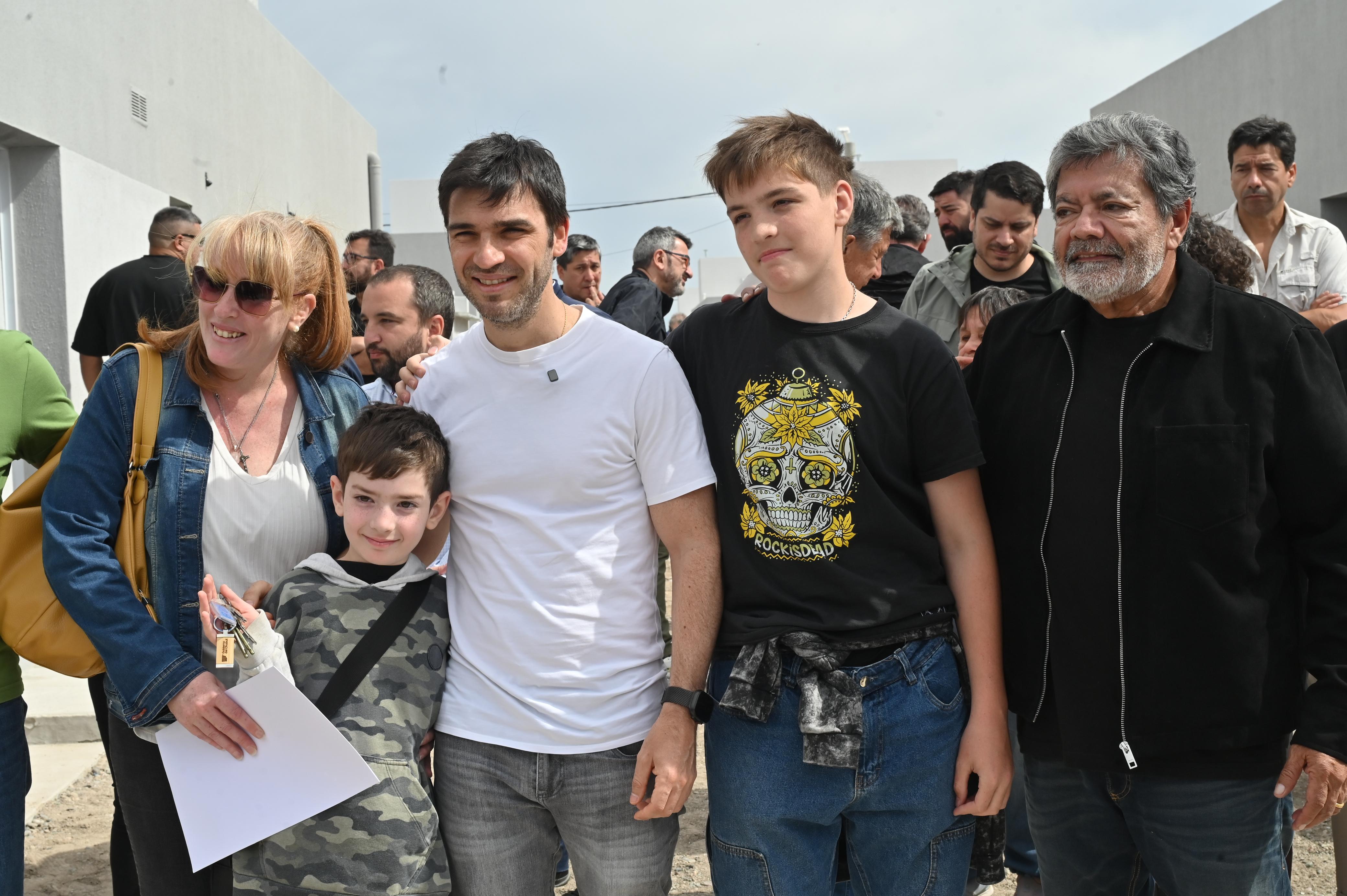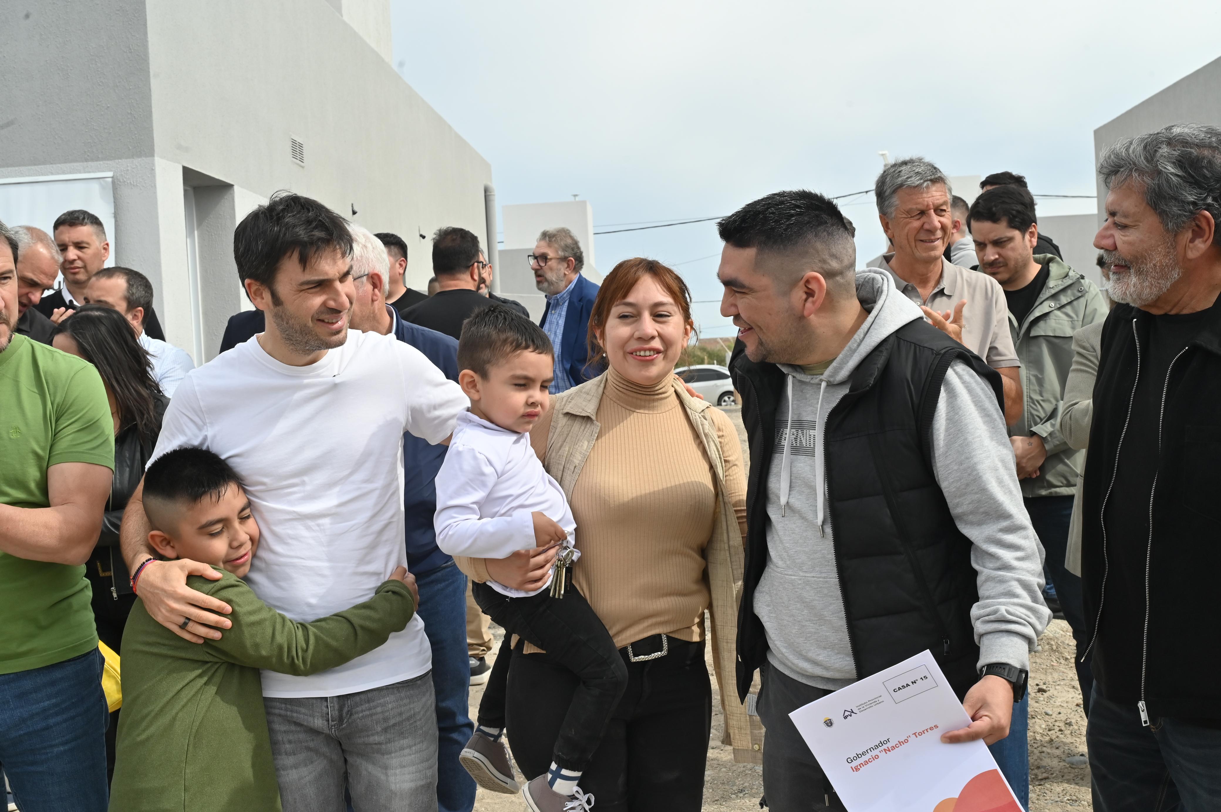 Torres destacó que "este es un acto que termina concretando lo más importante de gobernar, que es nivelar hacia arriba, generar oportunidades y, en este caso, brindar una solución habitacional para muchas familias de Trelew" y señaló que "detrás de cada una de estas viviendas, hay trabajo".